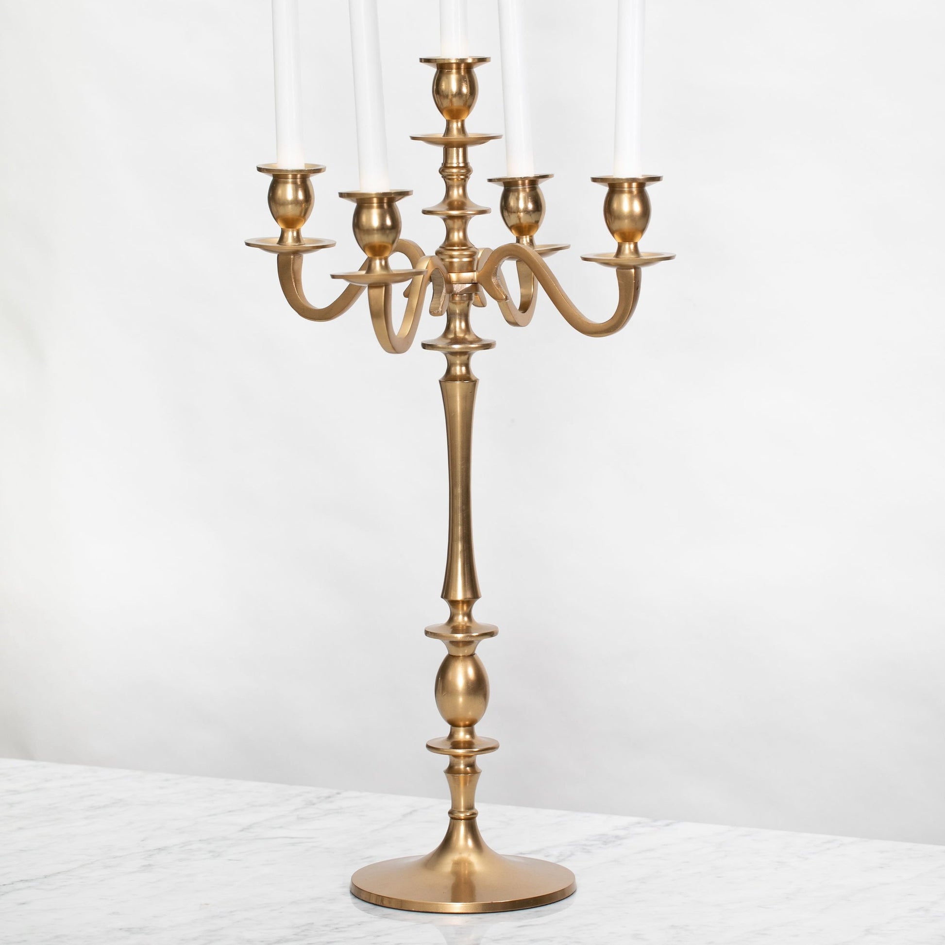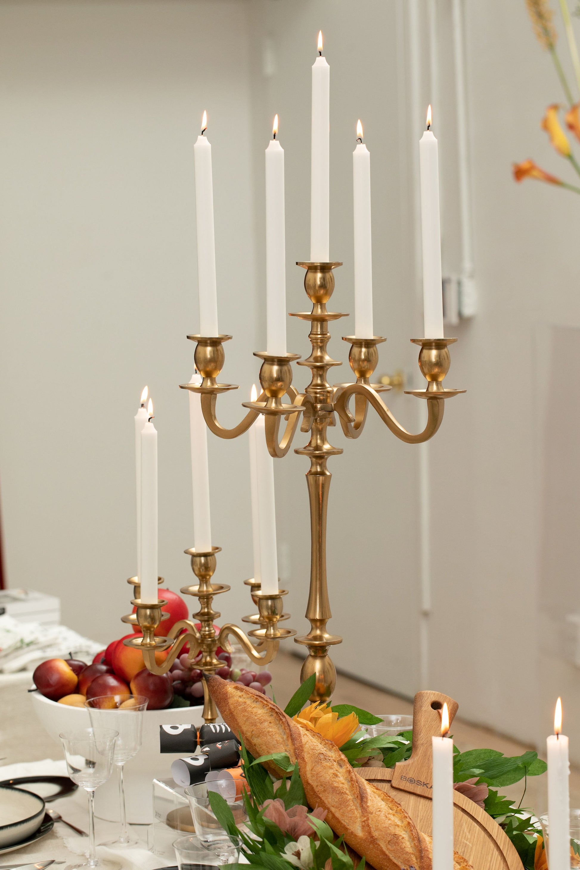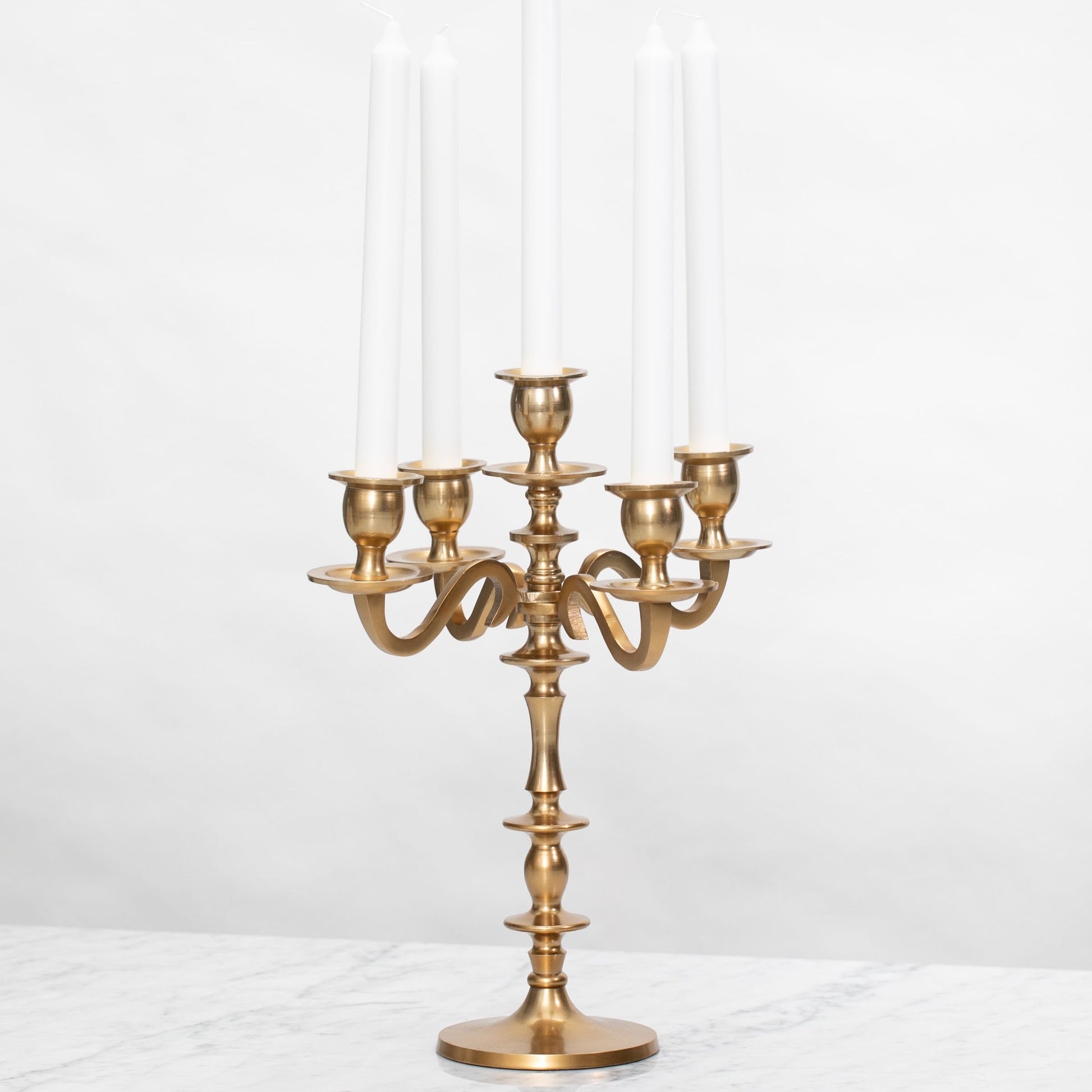 Elevate every dining experience with this Grand Candelabra. Flaweless as a centerpiece for any occasion, this gold masterpiece serves as a tablescape statement while also allowing you to converse with guests across the table. Bring glowing elegance into your home in a flash. Available in two sizes - tall and extra tall, for those moments you want to inspire even more “awe”.
