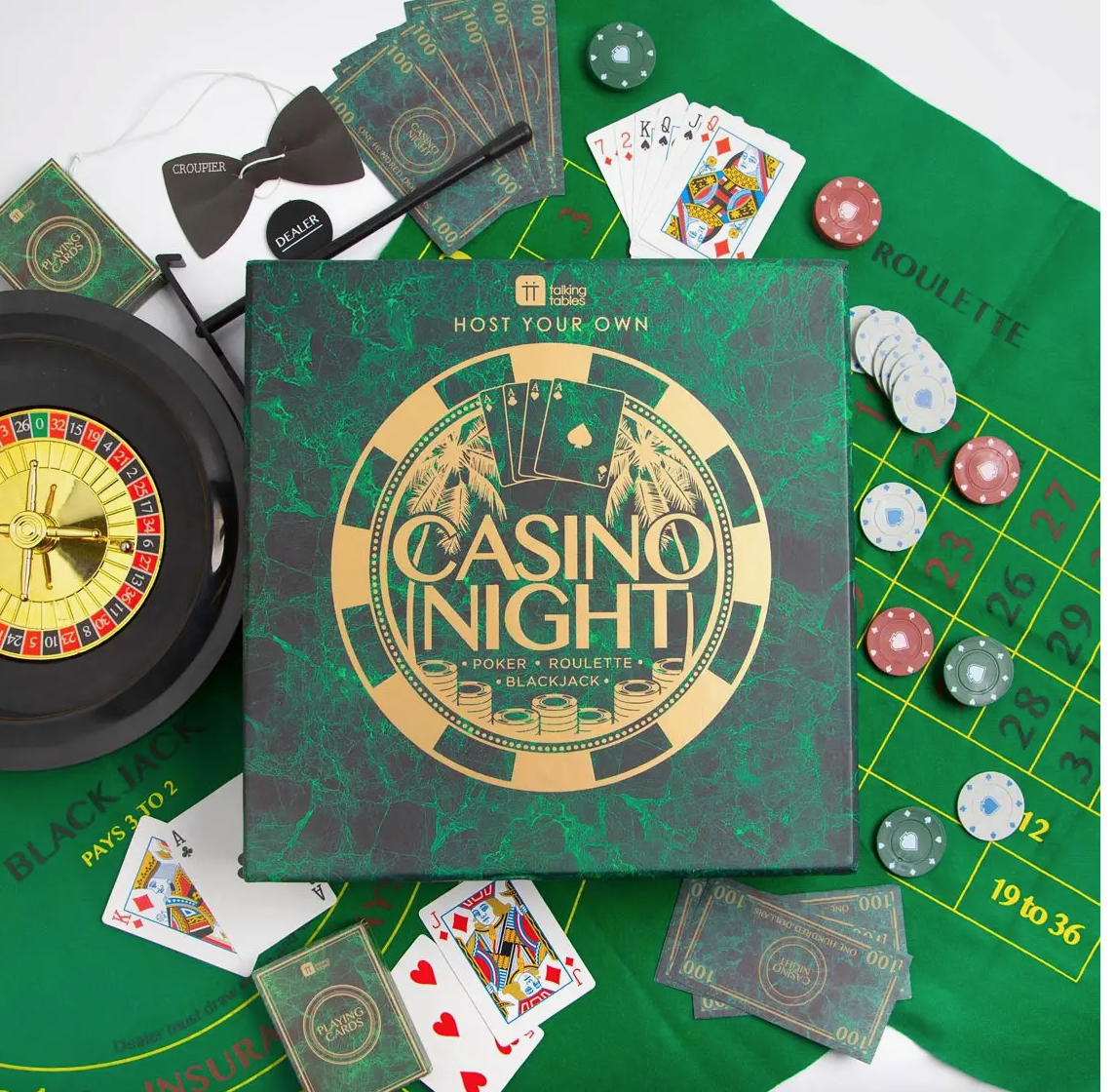 Perfect your poker face and get ready to play Poker, Blackjack, and Roulette with this incredible Casino Night set. Game night has never been easier!